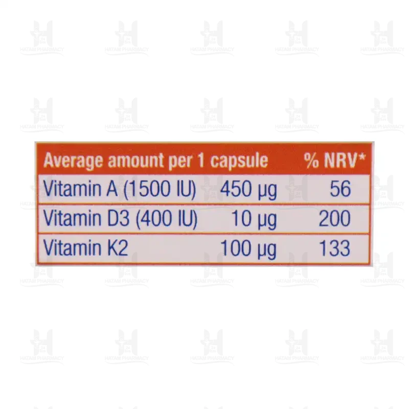 ویتامینهای ضروری A، D3 و K2 طراحی شده تا به جذب بهتر کلسیم، سلامت مفاصل و پیشگیری از پوکی استخوان کمک کند.